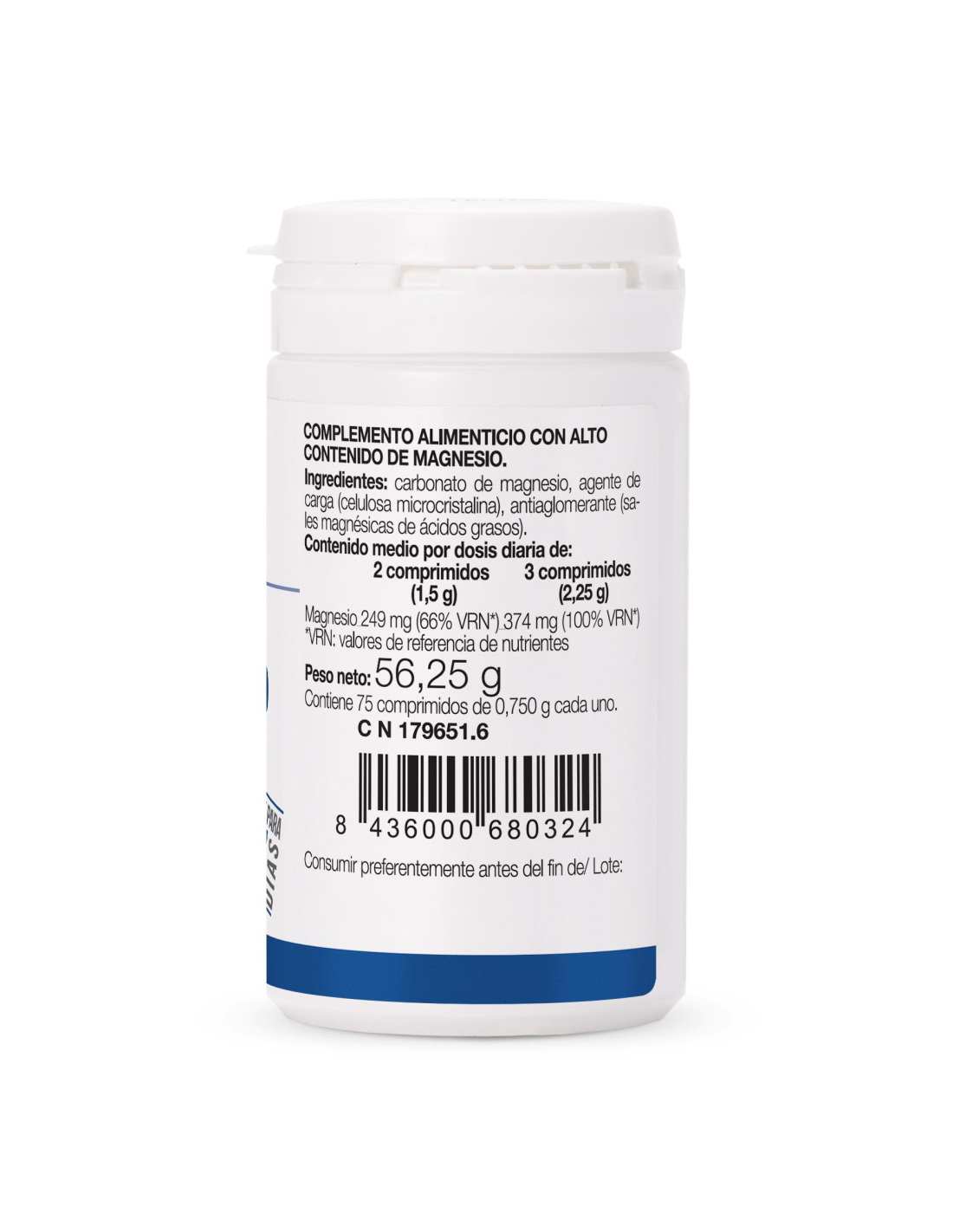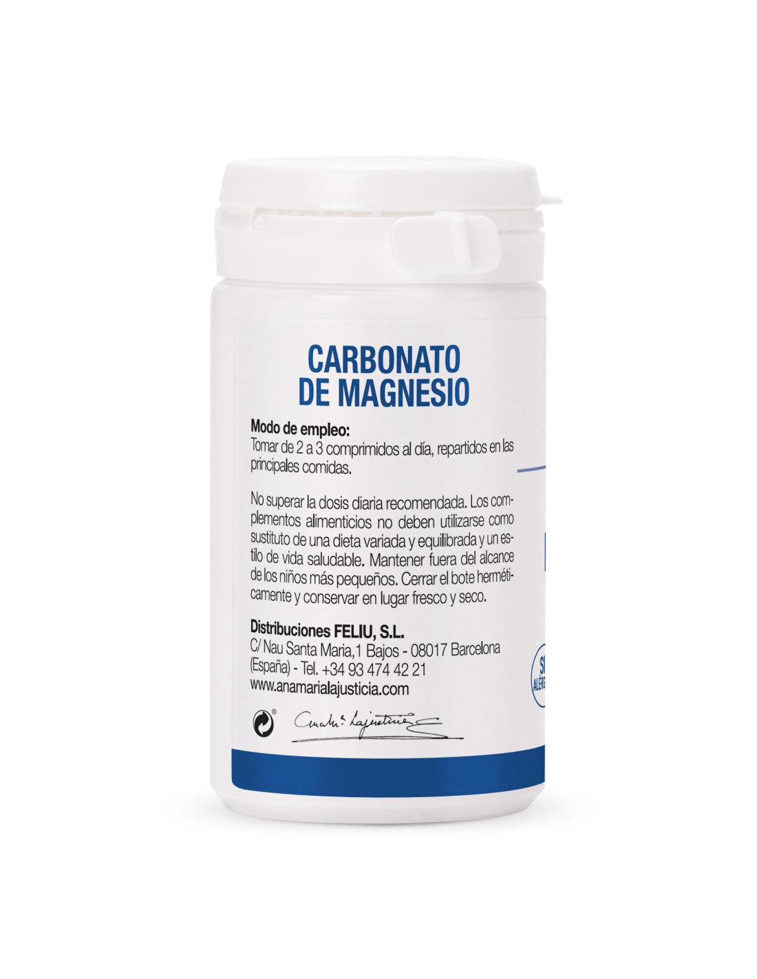 Ingredientes: carbonato de magnesio, antiaglomerantes (celulosa microcristalina, sales magnésicas de ácidos grasos).