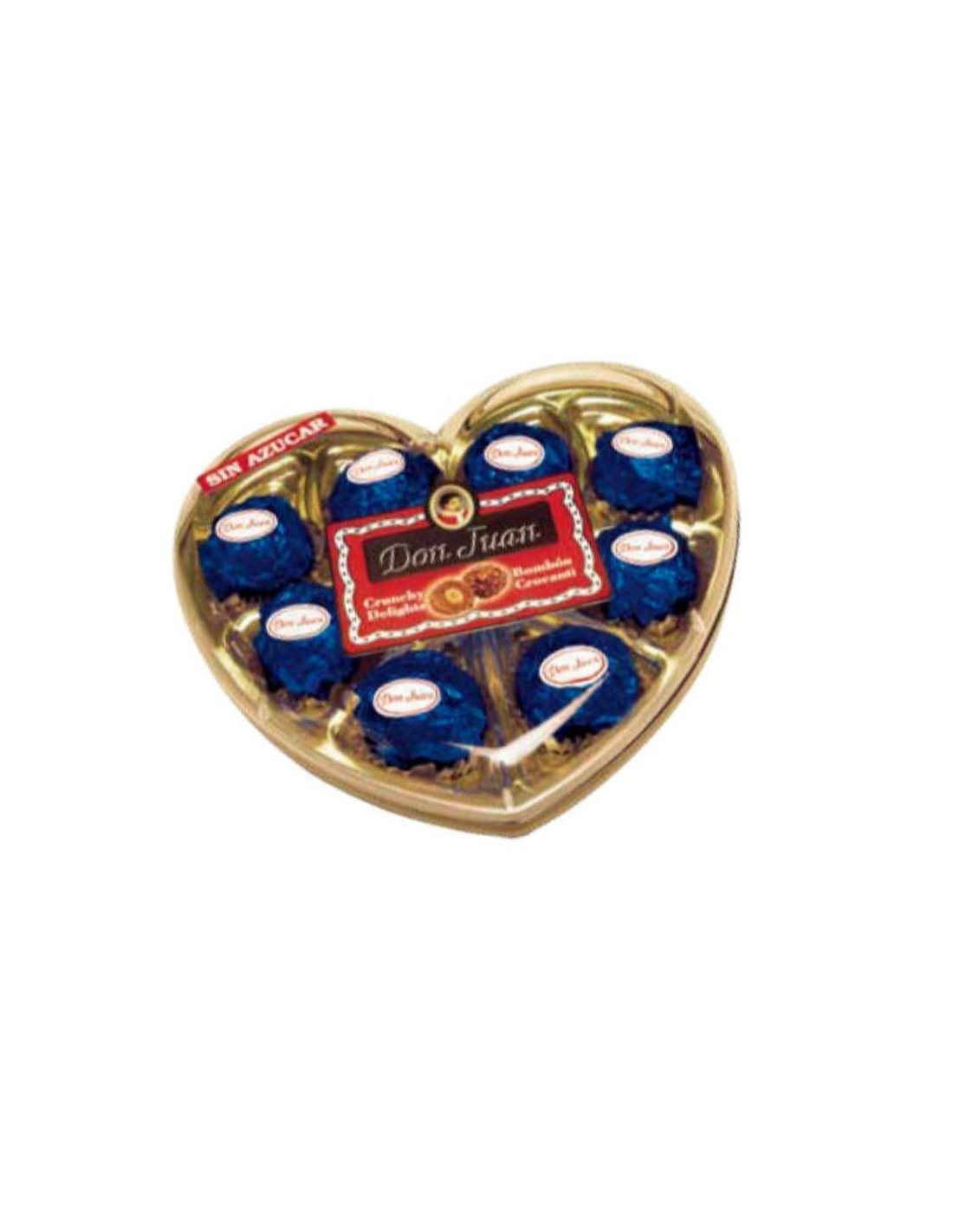 Oblea esférica rellena de crema sabor a avellana y avellana entera en el centro. Esta oblea está cubierta de cobertura vegetal de cacao sin azúcar.