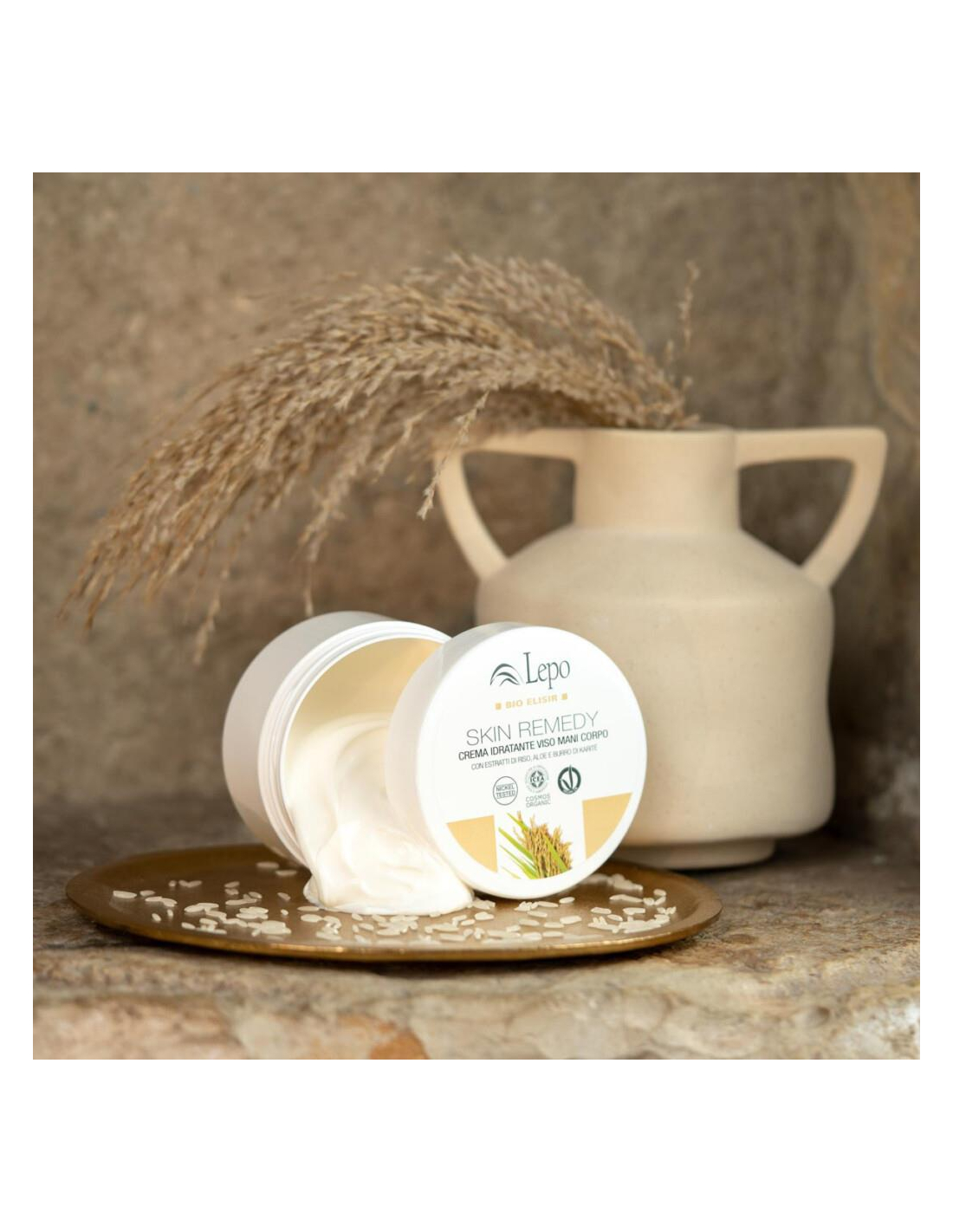 Crema hidratante para rostro, manos y cuerpo con preciosos ingredientes hidratantes y emolientes.