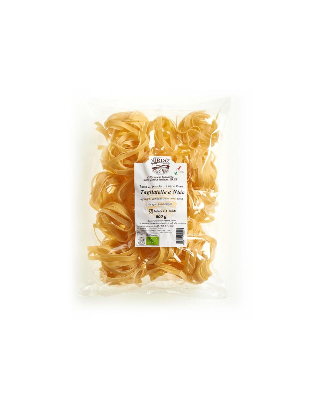 La pasta en formato tagliatelle de trigo duro ecológica IRIS se produce con una mezcla de granos cuidadosamente seleccionados por ellos de su propia cosecha, para garantizar un producto con un alto valor nutricional y con una óptima resistencia a la cocción. Toda la elaboración responde plenamente al método tradicional, con dibujo en bronce, para obtener una pasta agradablemente más rugosa y porosa, ideal para absorber y realzar las salsas.